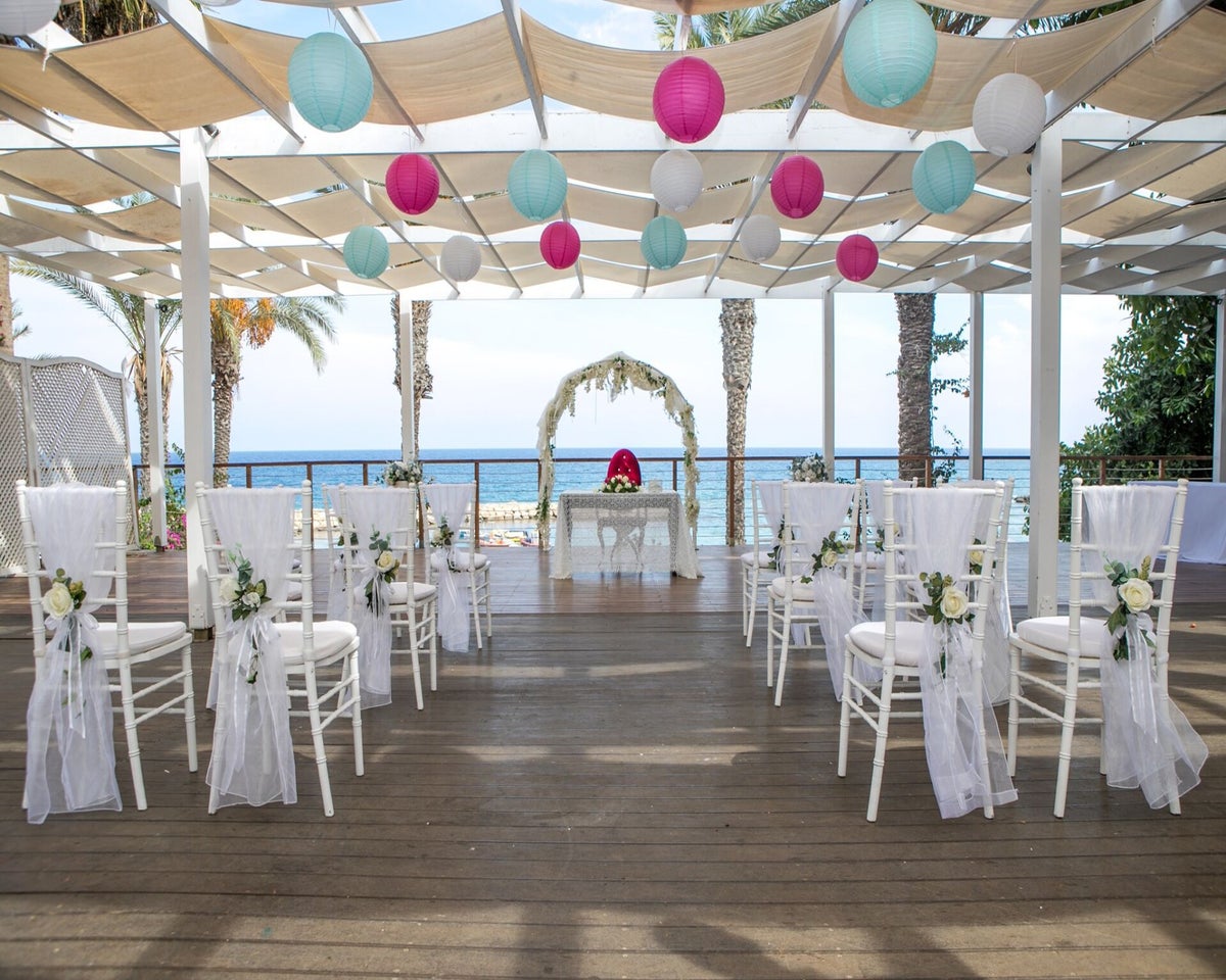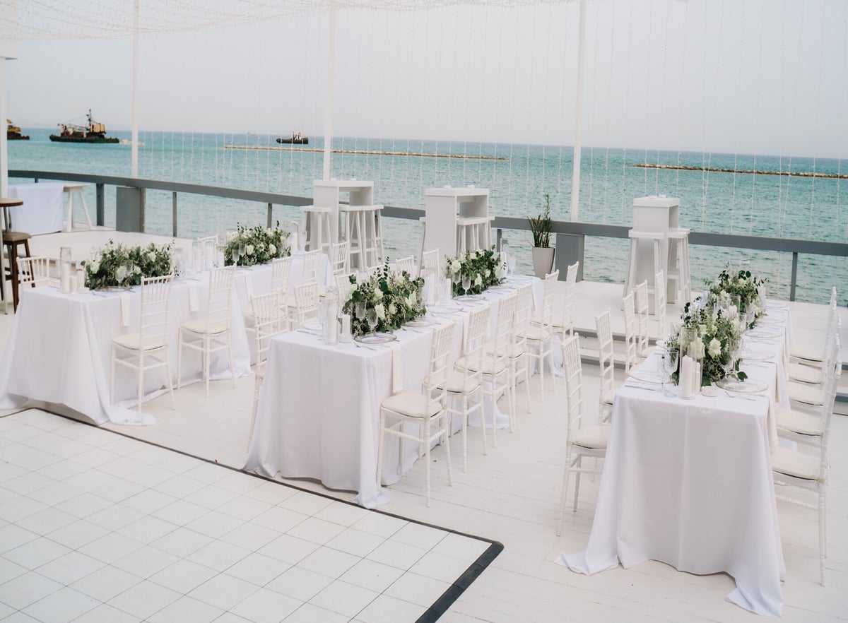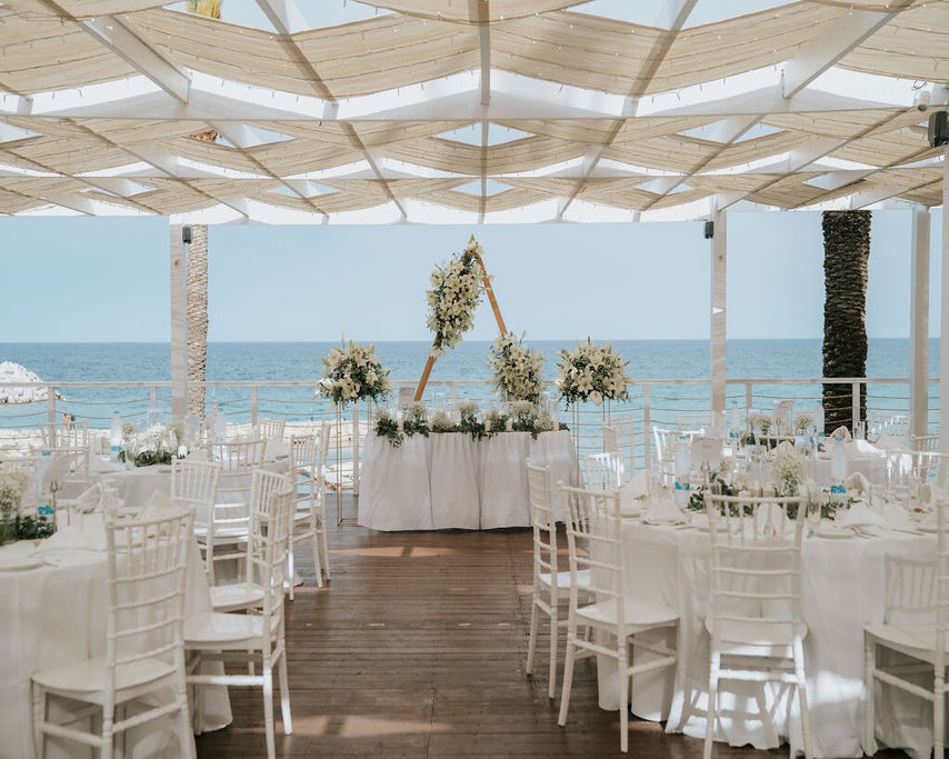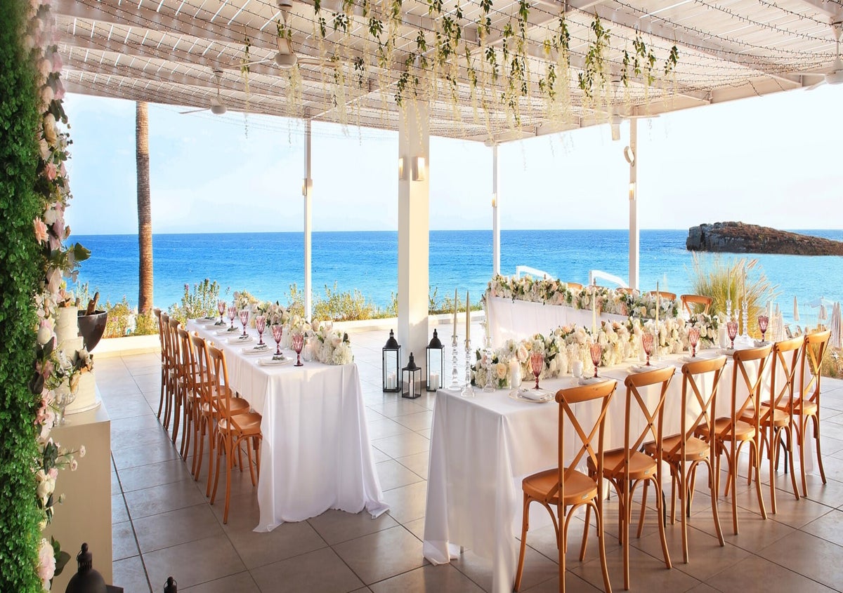 Experience a seaside wedding at the Aphrodite Beach Venue. Treat yourselves and your guests to a stunning sea view. Tjsi area can be customised to match any theme or scheme, making it the perfect spot for your wedding reception.