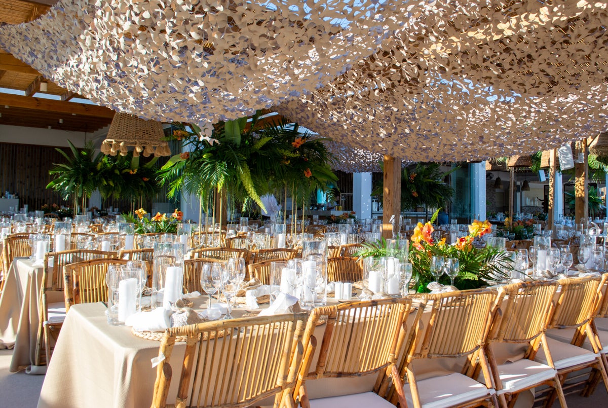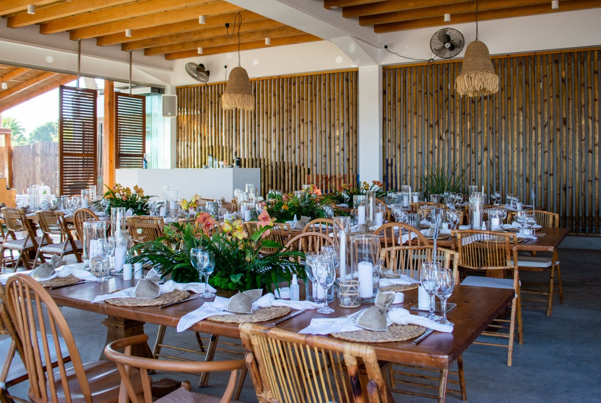 Offering the opposite to your traditional white wedding, Cavo Zoe's rustic vibes with wooden effect chairs and ivory table linen offer a unique experience altogether.